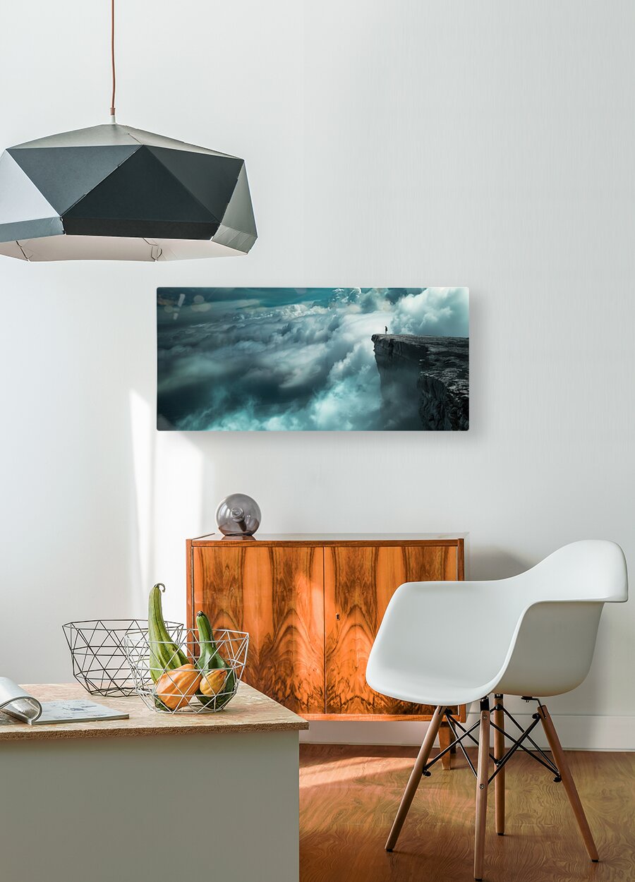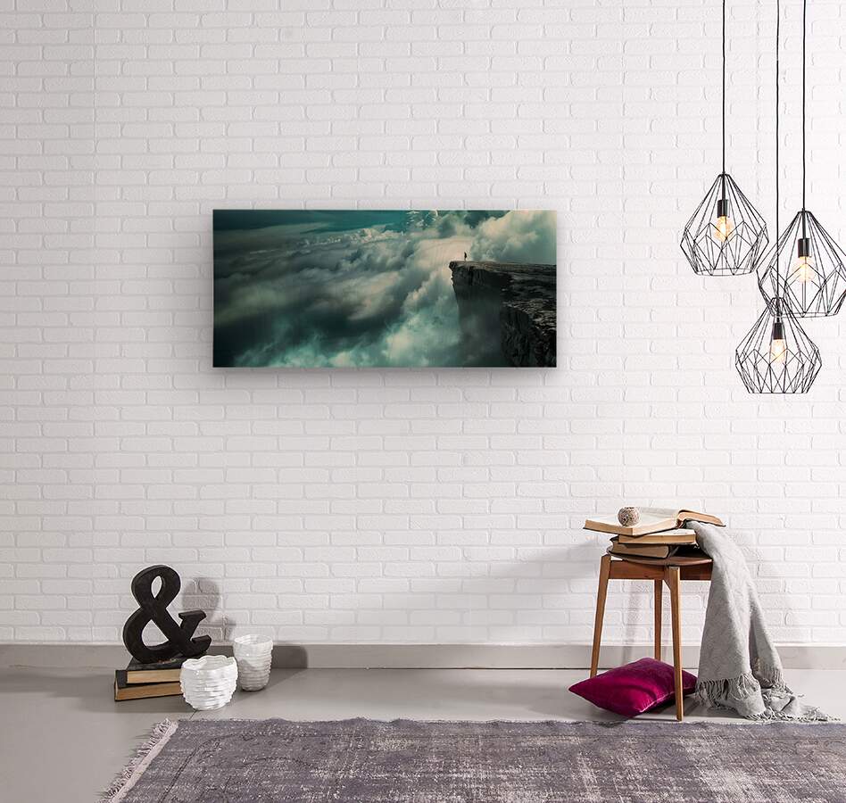 At the Edge of Heaven - Cliff Above the Clouds Art Prints  Wood print