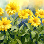 Loose washes, crisp petal edges, and a fresh white ground make these sunflowers glow like held light. “Golden Blooms” is joy with manners—bright...[+]