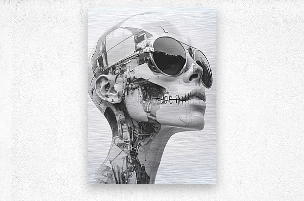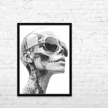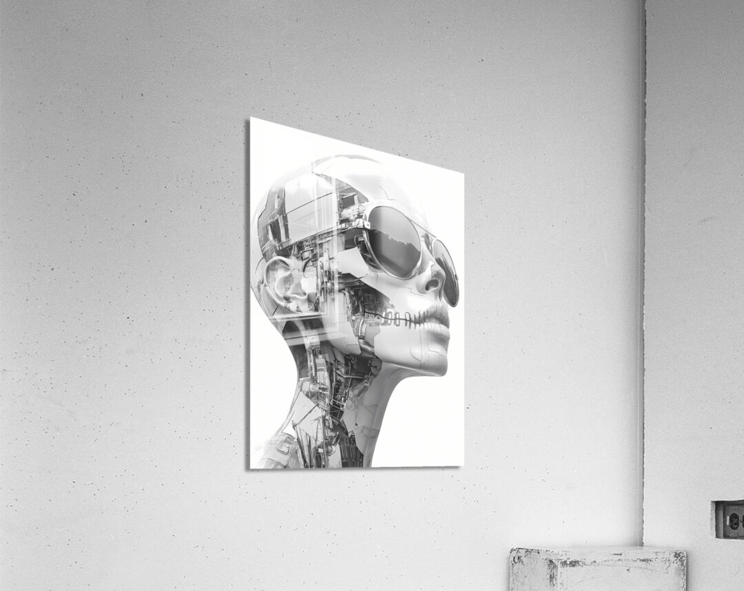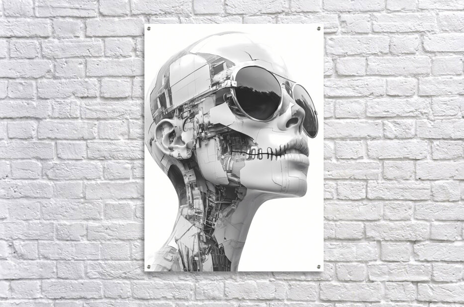 “Echoes of Escher” is a hauntingly beautiful homage to the legendary mind of M.C. Escher—reinterpreted through the cold elegance of artificial intelligence. This grayscale biomechanical portrait features a silent, machine-stitched humanoid form adorned with reflective aviator sunglasses, its skin composed of fractured architectural elements and embedded circuitry. With its lips sewn shut and expression unreadable, the figure becomes both sculpture and cipher—a being of perfect form, yet enigmatic purpose. Geometry meets ghost, code meets consciousness. The tension between symmetry and chaos, flesh and machine, echoes Escher’s fascination with paradox and illusion. It’s a visual riddle wrapped in chrome. Ideal for lovers of surrealist geometry, cyberpunk philosophy, posthuman beauty, and the mesmerizing language of design made eternal. “Echoes of Escher” blends pop culture edge with gallery-clean minimalism, perfect for studios, lofts, and modern offices. Strong contrast reads from distance; close inspection reveals intricate structure. Choose canvas for matte presence; HD metal for mirror-gloss precision; acrylic for glass-clear depth; or framed fine-art paper for a refined, low-glare finish. Printed with archival inks on premium materials in custom sizes, ready to hang or frame. Curated by Savage Art Prints.