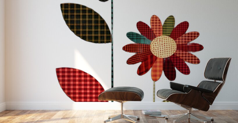Plaid Botanica 1 - Modern Floral Art Prints  Wood print
