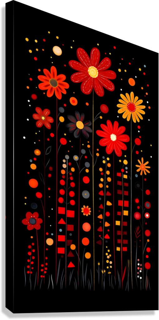 A midnight garden of stylized blooms rises on dotted stems—crisp geometry meets saturated color. “Geometric Garden” is built to punch up neutral rooms, hallways, and dining areas without feeling busy. The black field makes reds and oranges glow while keeping the overall look clean and modern. Choose canvas for a matte, tactile finish; HD metal for glossy brilliance; acrylic for glass-clear depth and a floating presence; or framed fine-art paper for a classic, low-glare look. Printed with archival inks on premium materials in custom sizes, ready to hang or frame. Curated by Savage Art Prints.
