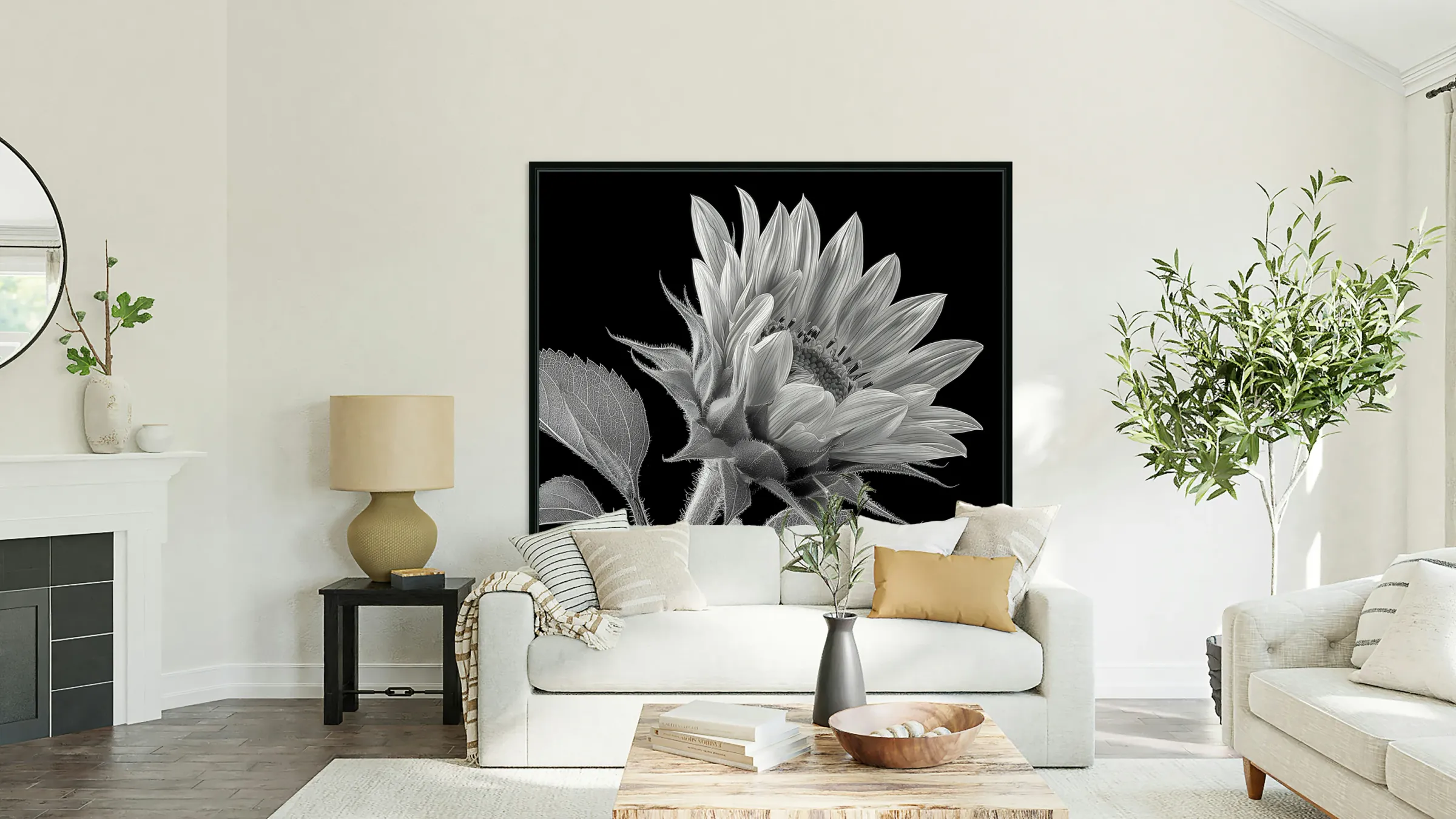 A close study of petals and spirals turns a familiar bloom into a refined statement. “Sunflower Selfie 8” blends farmhouse charm with modern restraint, ideal for kitchens, dining rooms, and relaxed living spaces. The grayscale palette keeps styling simple and calm. Choose canvas for matte texture; HD metal for luminous clarity; acrylic for glass-clear depth; or framed fine-art paper for a classic, low-glare presentation. Printed with archival inks on premium materials in custom sizes, ready to hang or frame. Curated by Savage Art Prints.