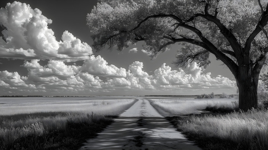 Prairie Road - Monochrome Landscape Art Prints Picture Frame Printing