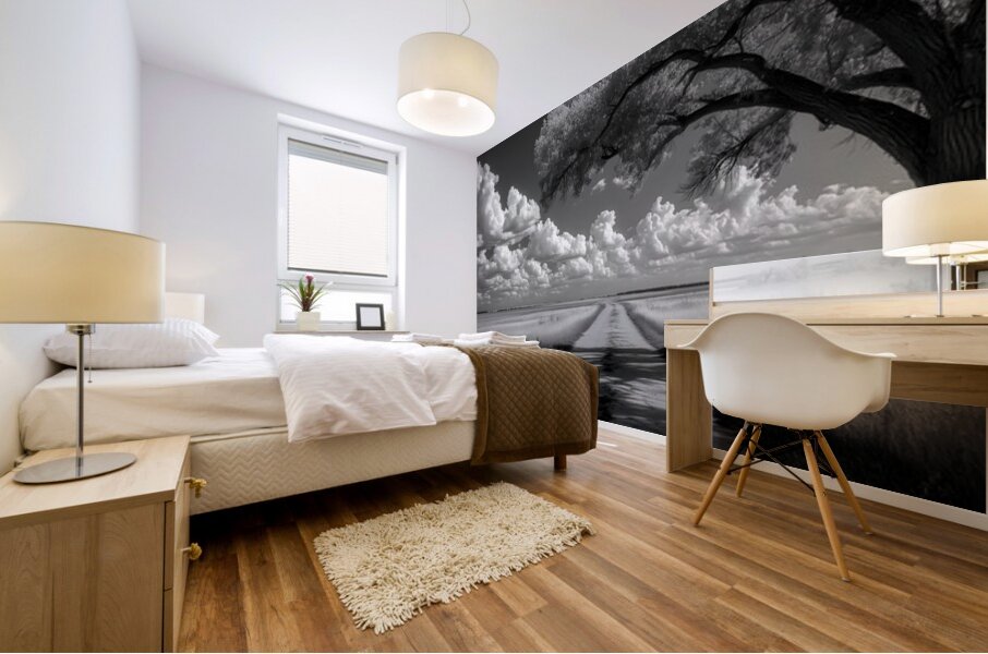 Prairie Road - Monochrome Landscape Art Prints  Wood print