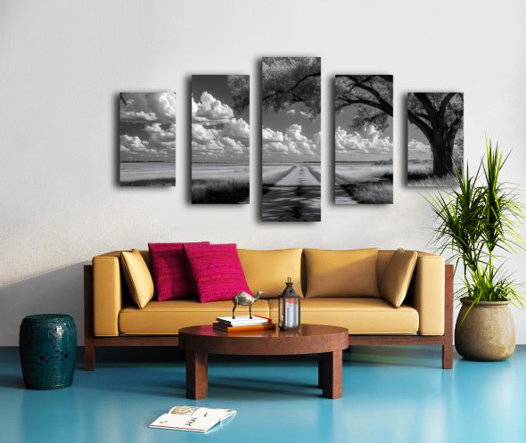 Prairie Road - Monochrome Landscape Art Prints Canvas print