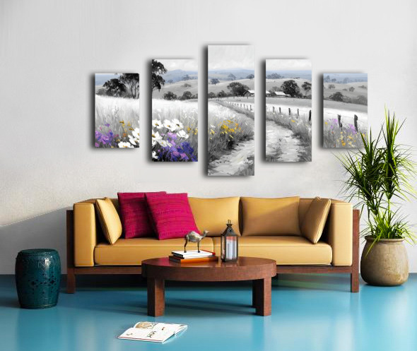 Flowers By The Fence - Country Floral Landscape Art Prints Canvas print