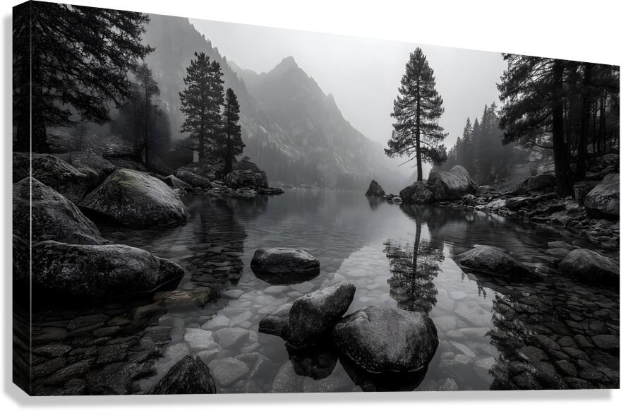 Still Water And Stones - Monochrome Landscape Art Prints Canvas print