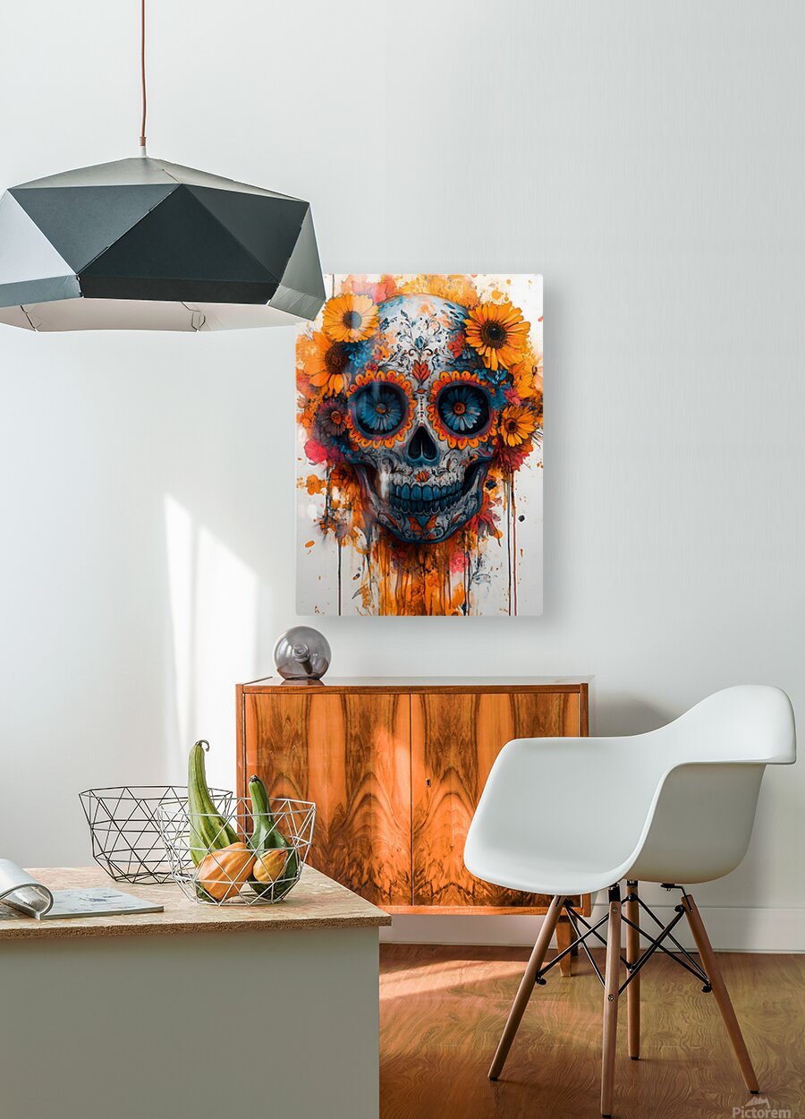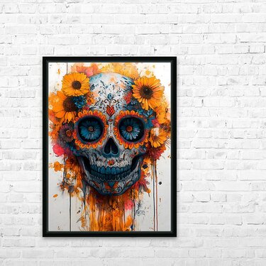 Marigolds ring a radiant skull—color for days, balanced by crisp shapes so it stays readable and modern. It’s an easy conversation piece for living rooms and dining spaces and a bright welcome in entries and studios. Choose canvas for warm matte tactility, HD metal for glossy saturation and sharp detail, acrylic for luminous depth, or framed paper for a classic, low-glare presentation. Printed with archival inks on premium materials and available in custom sizes to match your space. Curated by Savage Art Prints.