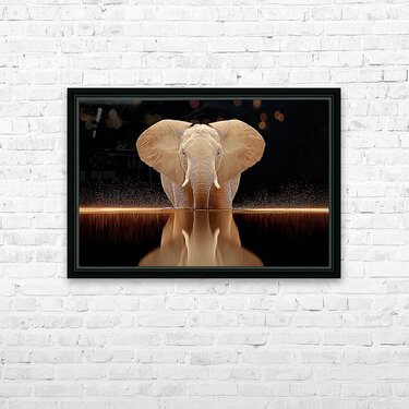 Golden Stillness – Elephant Reflection Print Picture Frame Printing