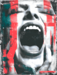 A bold mouth and blackout bar deliver instant graphic shock—pure poster language, high contrast, high impact. The composition is simple on purpose s...[+]