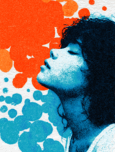 Dreamy blue tones bloom across a contemplative face as a splash of warm orange cuts through like sunlight. The painterly texture keeps it human and in...[+]