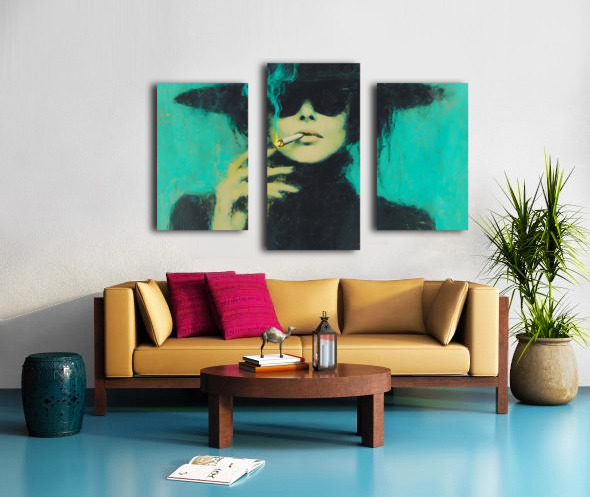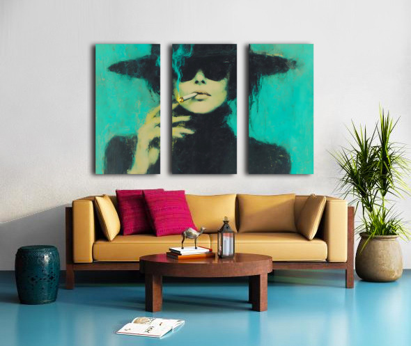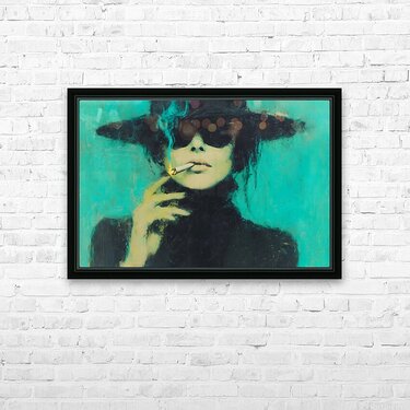 A cool-toned portrait with shaded eyes and soft film-grain texture balances mystery and elegance. Teal, charcoal, and cream keep the palette restrained so it lands sophisticated rather than loud. Use it to sharpen a living room or office, lend quiet drama to a bedroom, or greet guests with style in an entryway. Available as canvas (warm matte), HD metal (glossy precision), acrylic (glass-like depth), and framed paper (classic low glare). Printed with archival inks on premium materials and offered in custom sizes to fit your wall. Curated by Savage Art Prints.
