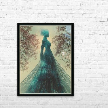 A graceful silhouette and flowing gown channel Parisian poise in a cool, teal-leaning palette with soft neutrals and ink accents. Painterly edges keep the piece warm while the composition stays tailored, giving it gallery presence without fuss. It complements mid-century lines, brass, marble, and light woods—perfect above a sofa, console, or vanity, and equally refined in a bedroom, office, or entryway. Choose canvas for warm matte texture, HD metal for glossy saturation and crisp contrast, acrylic for sleek, glass-like depth, or framed paper for a timeless, low-glare finish. Printed with archival inks on premium materials and available in custom sizes so you can scale from accent to centerpiece. Curated by Savage Art Prints.