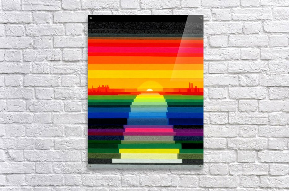 A rainbow stairway descends toward a glowing horizon, blending retro-digital stripes with a calm, symmetrical layout. The color story is bold but tidy, so it lands as a modern statement rather than noise. Great for living rooms and media spaces, and a mood boost for offices, studios, and entryways. Choose canvas for warm matte texture, HD metal for glossy saturation and crisp lines, acrylic for glass-like depth, or framed paper for a classic, low-glare finish. Produced with archival inks on premium materials and offered in custom sizes to nail the perfect proportion. Curated by Savage Art Prints. Printed with premium archival inks on your choice of high-quality materials including stretched canvas, acrylic, metal, HD metal, wood, murals, framed prints, and roll prints. Multiple sizes and custom framing options available to perfectly fit your vision.
