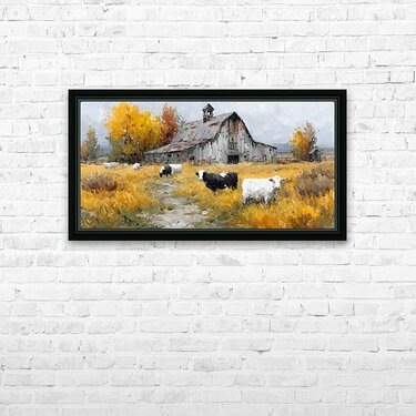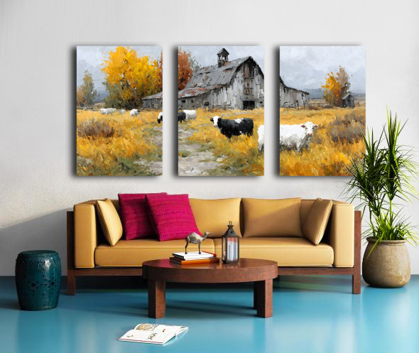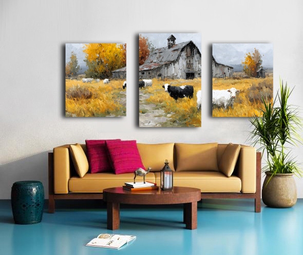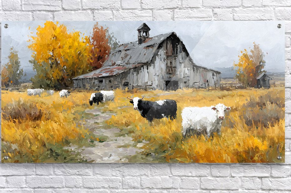 Weathered barn wood, golden grass, and calm cattle set a grounded farmhouse mood in a natural, muted palette. Gentle textures and heritage details make this an easy match for rustic and modern-farmhouse spaces, adding warmth without clutter. Hang it in living rooms, kitchens, entryways, or an office to bring rural quiet into daily routine. Choose canvas for warm matte texture, HD metal for crisp contrast and vivid gloss, acrylic for sleek, glass-like depth, or framed paper for a classic, low-glare finish. Printed with archival inks on premium materials and available in custom sizes to balance a mantel, sofa wall, or dining nook. Curated by Savage Art Prints.