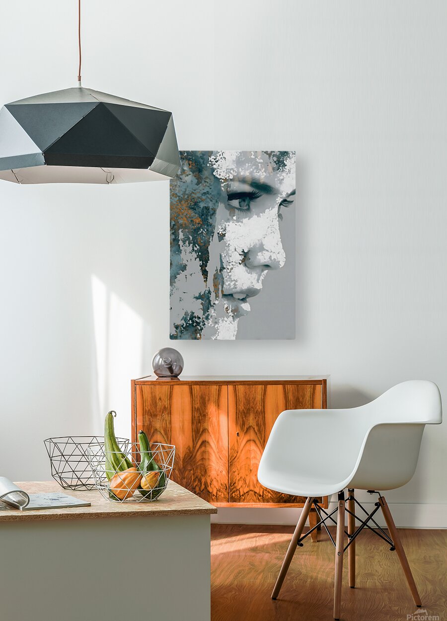 A moody female profile emerges through layered texture and gentle grain, blending figurative realism with abstract weathering for a piece that feels storied and modern at once. The palette sits in cool neutrals with soft blue-gray undertones, creating a calm, high-contrast look that reads clearly from across the room. It’s an easy anchor for contemporary, minimalist, and eclectic spaces—ideal above a sofa, console, or bed, and strong in offices and entryways where you want quiet intensity without clutter. Available as canvas for warm matte tactility, HD metal for vivid gloss and crisp detail, acrylic for glass-like depth, and framed paper for a classic, low-glare finish. Printed with archival inks on premium materials and offered in custom sizes to match your layout and lighting. Curated by Savage Art Prints.
