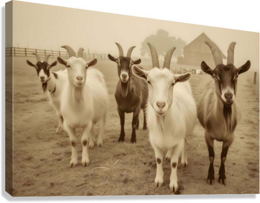Curious Goats at the Fence – Farmhouse Animal Art Print Canvas print