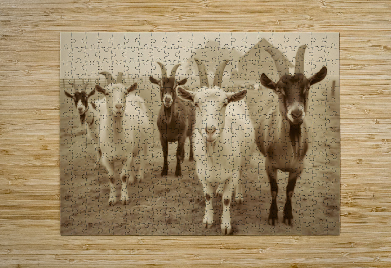 Curious Goats at the Fence – Farmhouse Animal Art Print Savage Art Prints Puzzle printing