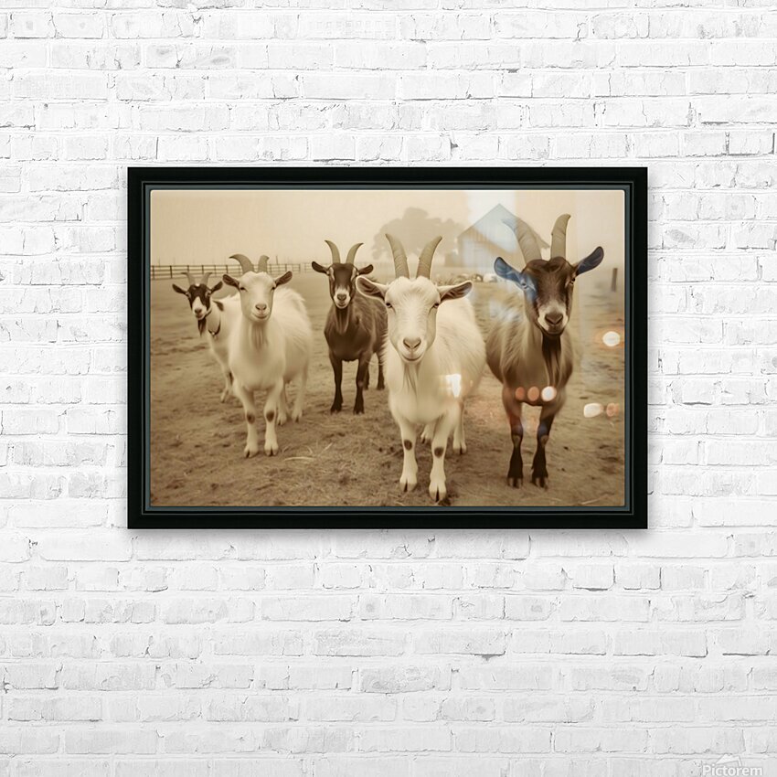 Curious Goats at the Fence – Farmhouse Animal Art Print Picture Frame Printing