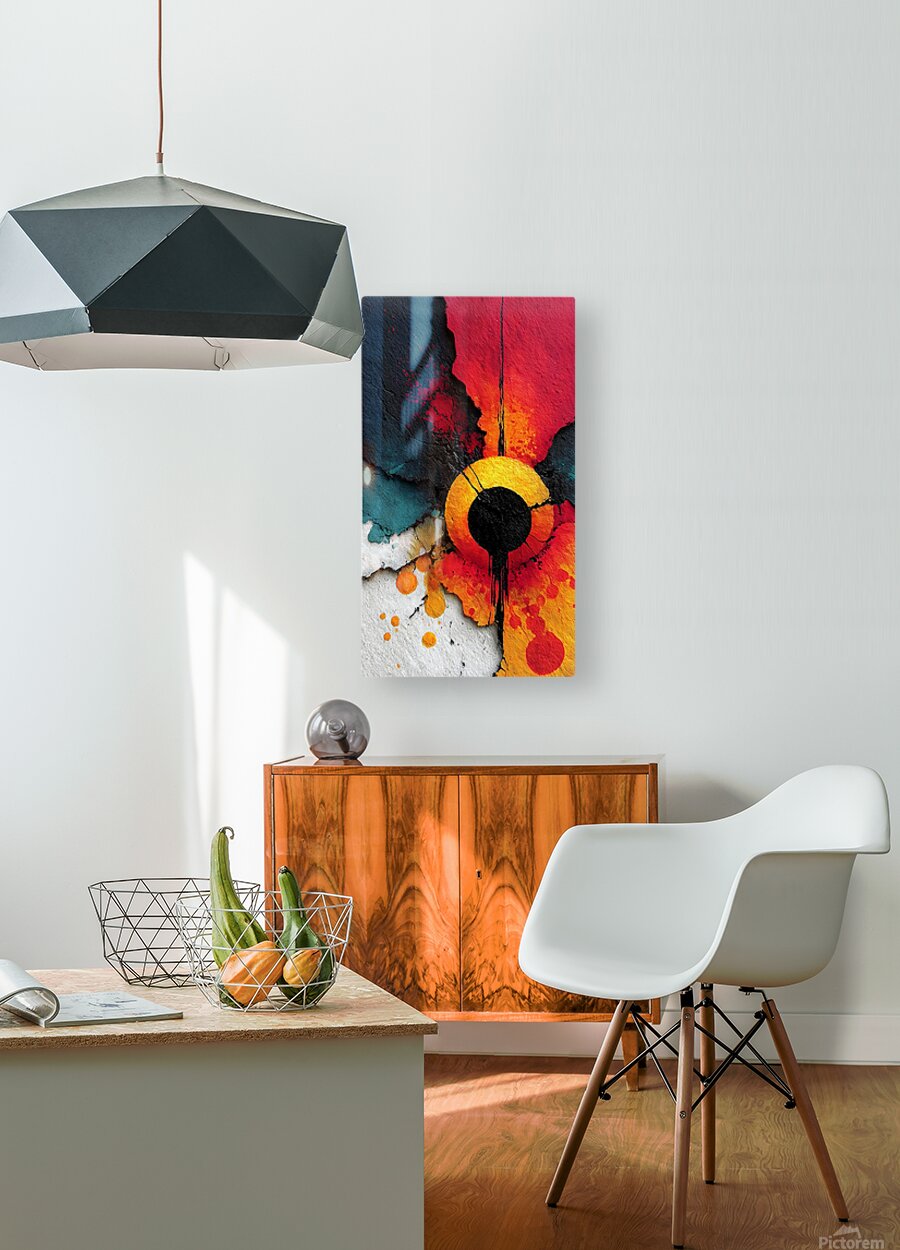 A glowing red and gold ring fractures across a concrete-gray surface, blending raw texture with striking minimal geometry. Solar Ring fuses the grit of industrial design with the polish of fine art, creating a bold abstract focal point for modern interiors. Its cracked, weathered surface contrasts beautifully with the luminous metallic tones, offering depth and dimension that reward closer viewing. Perfect for living rooms, offices, and entryways, this piece commands attention without overwhelming the space. Choose canvas for a matte, tactile feel; HD metal for crisp vibrance and glossy finish; acrylic for glass-clear depth; or framed fine-art paper for a refined, low-glare look. Printed with archival inks on premium materials in custom sizes, ready to hang or frame. Curated by Savage Art Prints.