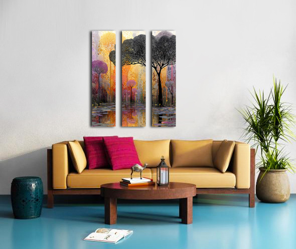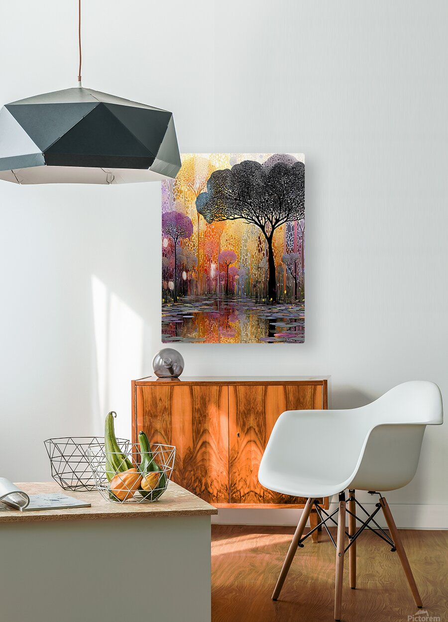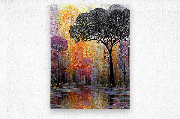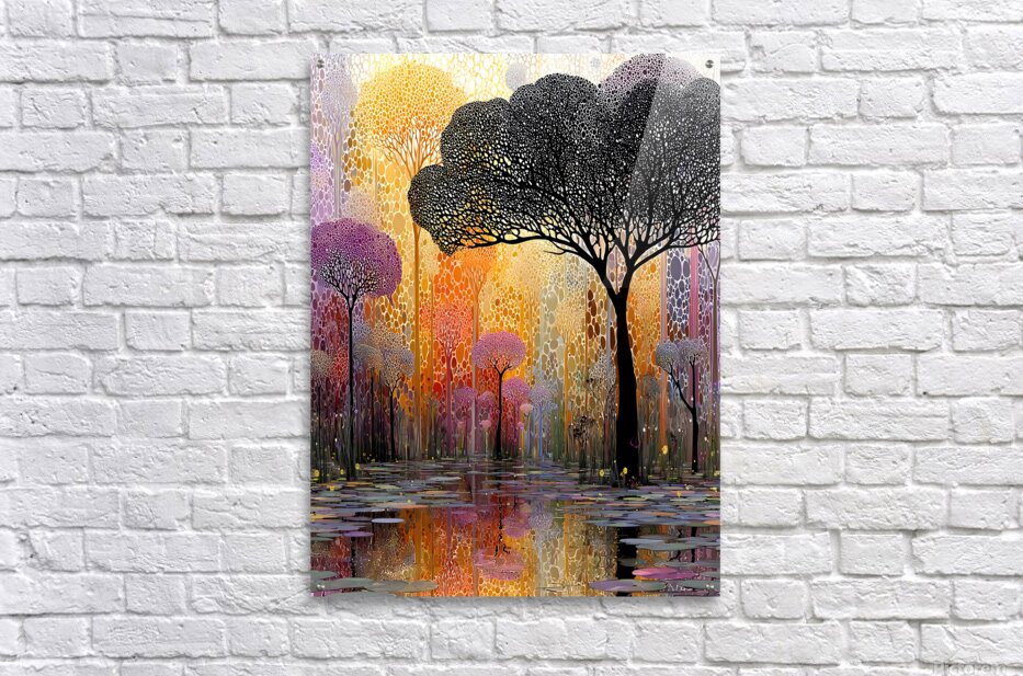 A mosaic of tiny organic shapes and soft, twilight hues transforms a lakeside grove into an almost-mystical scene that invites slow looking. “Lilywood Twilight” balances exquisite detail with broad washes of color, making it a perfect calming anchor for bedrooms, meditation nooks, or reception areas seeking quiet beauty. Printed on textured canvas for tactile resonance or on archival fine-art paper for a refined gallery display; HD metal is recommended when you want the reflective highlights to sing. Archival inks and custom framing options make this a long-lasting, elegant presence in any room. Curated by Savage Art Prints.