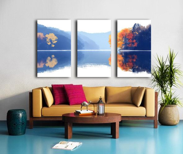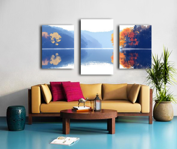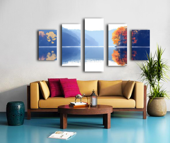 Blue Haze – Misty Lake Reflection Print Canvas print