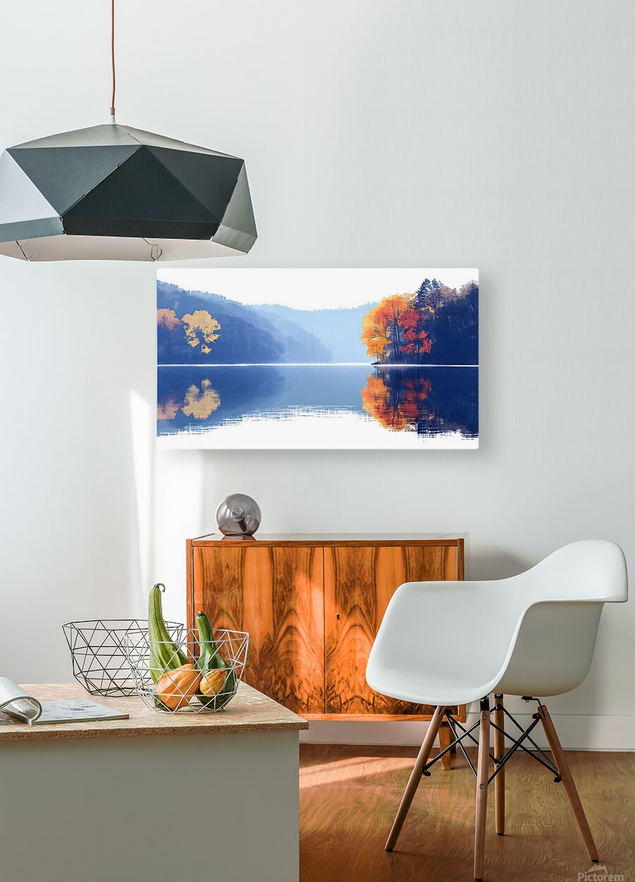 ABOUT THIS ARTWORK: BLUE HAZE – MISTY LAKE REFLECTION PRINT