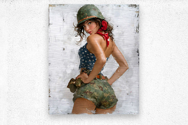 Liberty Pin Up – Vintage Army Muse Art Print  Wood print