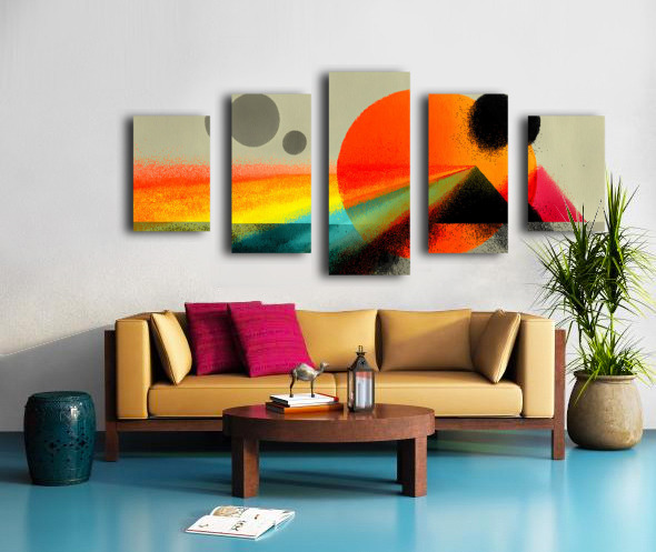 Desert Orbit – Retro Sun and Pyramid Abstract Print Canvas print