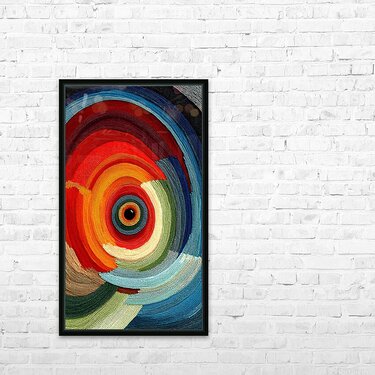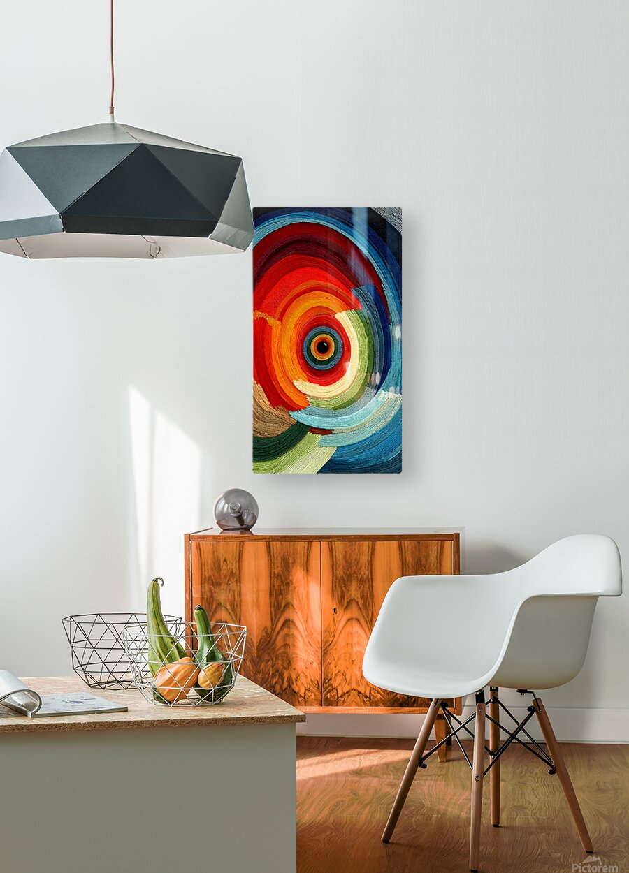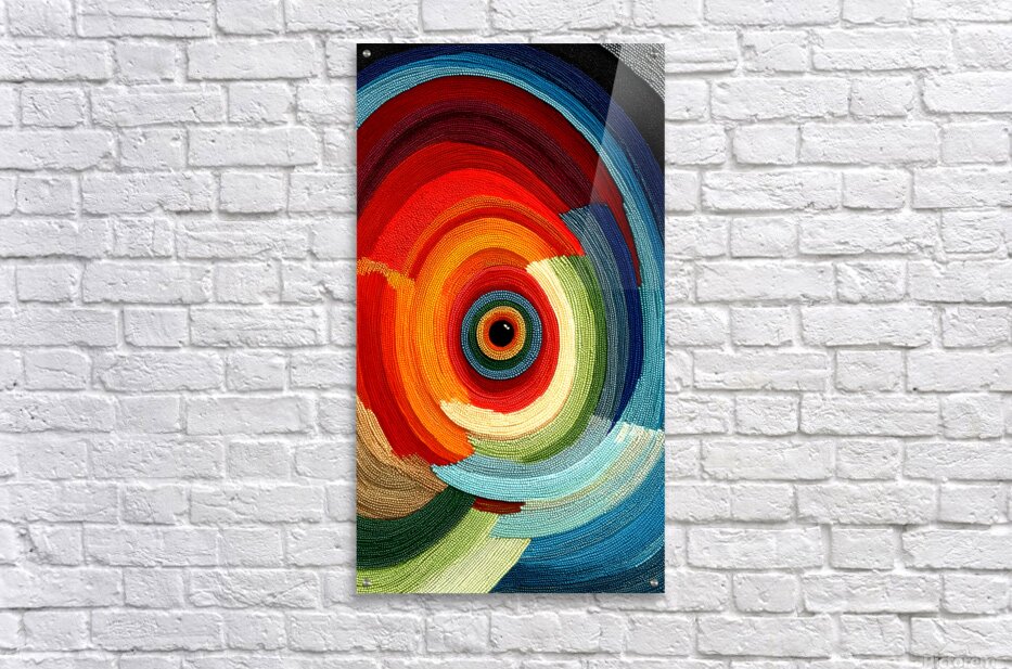 Thousands of tiny bead-like dots spiral inward, forming radiant bands of ember, coral, jade, and deep cerulean around a hypnotic black center. “Chromatic Whirlpool” reads both sculptural and painterly—the tight concentric pattern gives it a tactile, hand-set feel while the sweeping motion energizes any space. Bold yet balanced, it pairs easily with modern neutrals, warm woods, and boho textiles. Choose canvas for velvety matte depth, HD metal for ultra-vivid gloss, acrylic for glass-clear dimensionality, or framed fine-art paper for a refined, low-glare finish. Archival inks, premium materials, custom sizes. Curated by Savage Art Prints.