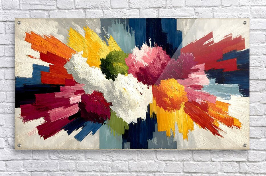 Chunky, knife-cut strokes collide—scarlet, marigold, fuchsia, midnight, and cloud—forming a high-energy bloom of texture you can almost feel. The balanced composition keeps the fireworks refined, making this piece as versatile as it is vivid. Style it over a credenza or conference table for instant creative momentum. Available as canvas (matte depth), HD metal (mirror-clean gloss), acrylic (crystal clarity), or framed fine-art paper (elegant, low-glare). Archival materials, custom sizes, gallery finish. Curated by Savage Art Prints.