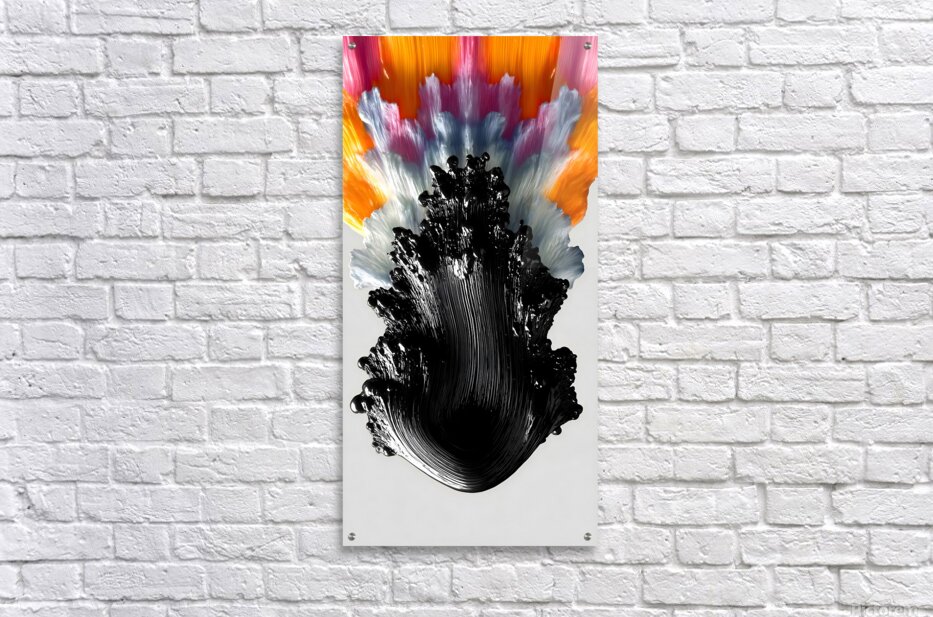 A jet of inky black erupts into a crown of neon—magenta, tangerine, teal, and violet—like fireworks frozen mid-ignite. The crisp white field and velvety paint texture amplify the drama, giving “Chromaflare Plume” high-contrast punch from across the room. Hang it where energy matters: creative studios, entryways, or above a modern console. Choose canvas for quiet, matte depth; HD metal for glossy, billboard-bright color; acrylic for glass-clear dimensionality; or framed fine-art paper for a refined, low-glare finish. Archival inks, premium substrates, and custom sizes deliver gallery quality, ready to live large. Curated by Savage Art Prints.