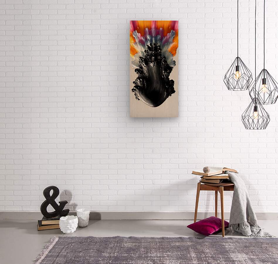 Chromaflare Plume – Abstract Paint Burst Print  Wood print