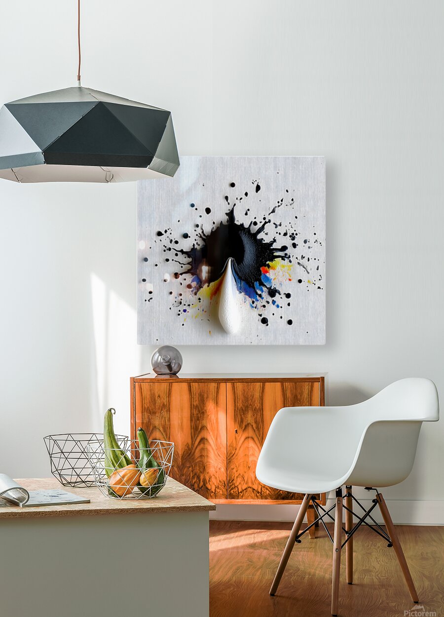 A dense onyx bloom detonates against a pale ground, flinging needle-fine spatter while a swipe of cobalt and a kiss of ochre arc through the blast. “Impact Point” is poised and powerful—an elegant collision of restraint and drama that pairs effortlessly with concrete, wood, and neutral palettes. Perfect for entryways, conference rooms, or minimalist living spaces. Choose canvas for tactile matte texture; HD metal for crisp contrast and glossy punch; acrylic for luminous depth; or framed fine-art paper for a quiet, museum-ready look. Archival inks, premium substrates, custom sizes. Curated by Savage Art Prints.
