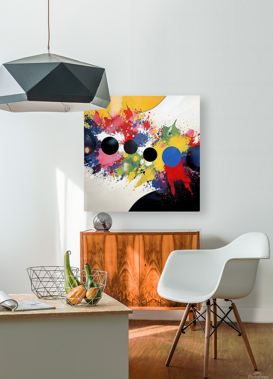 Magenta, cyan, lemon, and ink detonate across a crisp field while glossy discs punctuate the blast like tiny planets. “Orbital Dayglow” balances playful pop color with dramatic contrast, reading bold from across the room and revealing delicious micro-spray and texture up close. Hang it where you want instant energy—media rooms, creative studios, and modern living spaces. Choose canvas for matte, painterly depth; HD metal for billboard-bright gloss; acrylic for glass-clear dimensionality; or framed fine-art paper for a refined, low-glare look. Archival inks, premium substrates, and custom sizes. Curated by Savage Art Prints.