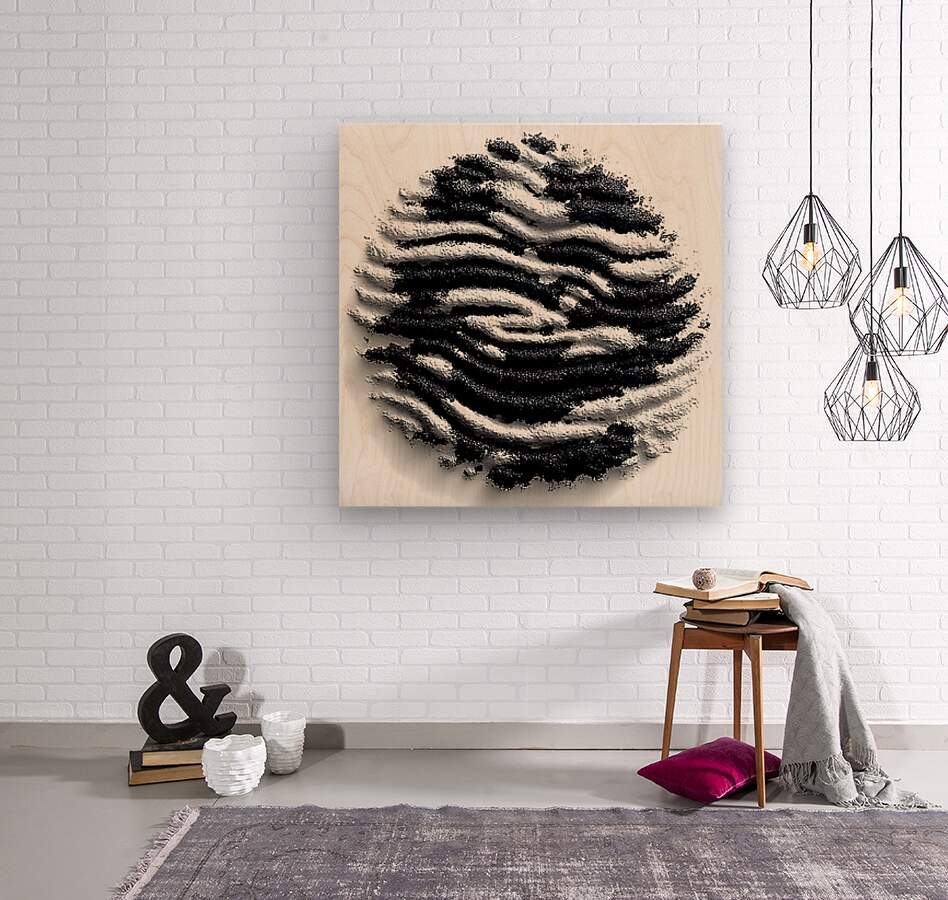 Granular Echo – Tactile Monochrome Orb Print  Wood print
