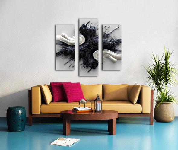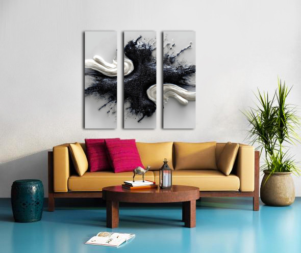 Ivory & Onyx Collision – Abstract Paint Splash Print Canvas print