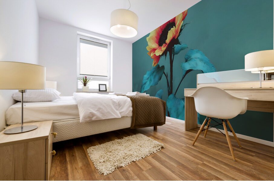 “Teal Garden Sunflower” pairs a velvety teal backdrop with a single bloom tipped in warm coral and gold. The moody palette turns a classic flower ...[+]