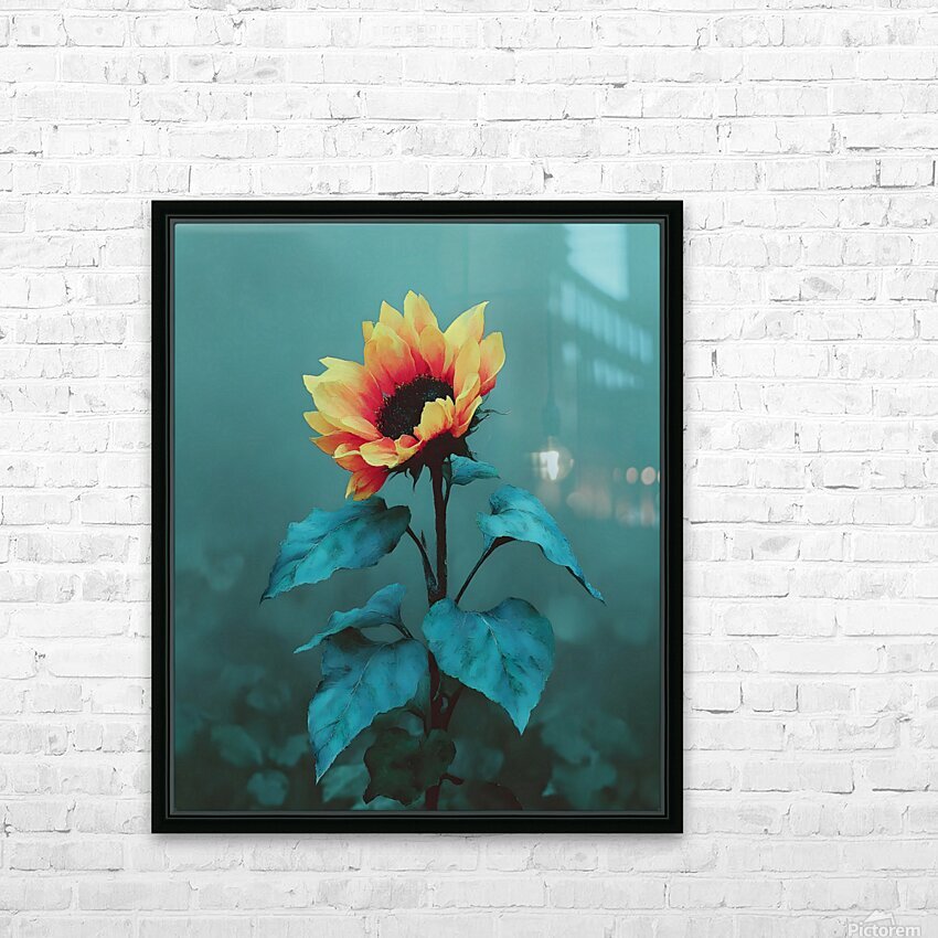 Teal Garden Sunflower – Moody Botanical Art Print Picture Frame Printing