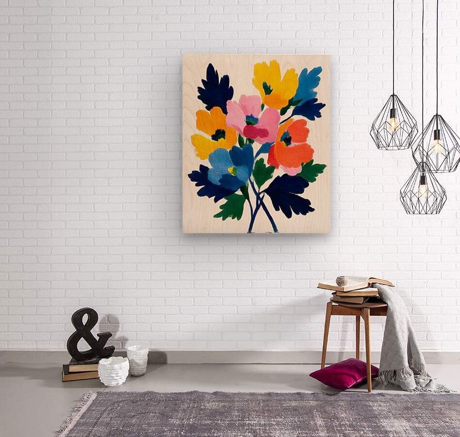 Colorblock Bouquet – Bold Abstract Floral Print  Wood print