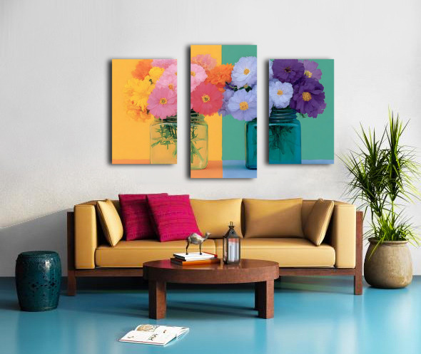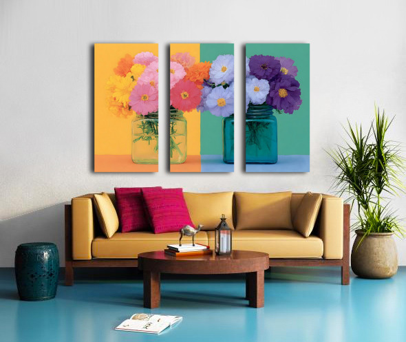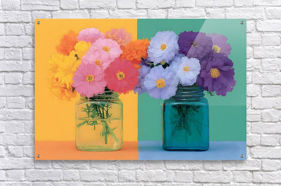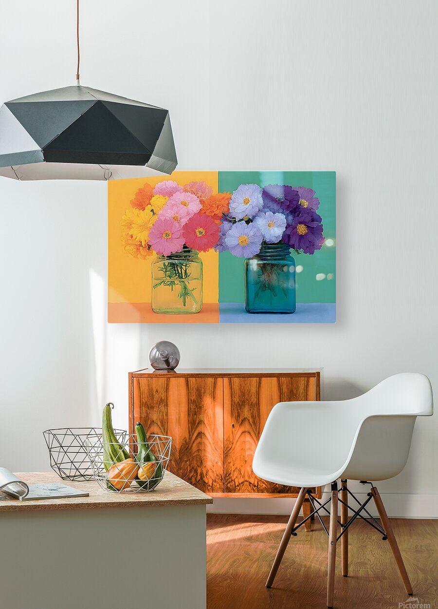 “Sunny Duo” sets two bright jars of blossoms against a creamy peach-to-teal backdrop for a fresh, modern cottage feel. The pastel gradients and candy-colored florals energize kitchens, dining areas, and cozy living rooms without overwhelming the space. Choose canvas for a soft, matte gallery texture; HD metal for crisp edges and luminous color; acrylic for glossy depth; or framed fine-art paper for a refined, low-glare finish. Printed with archival inks on premium materials and offered in custom sizes. Curated by Savage Art Prints.