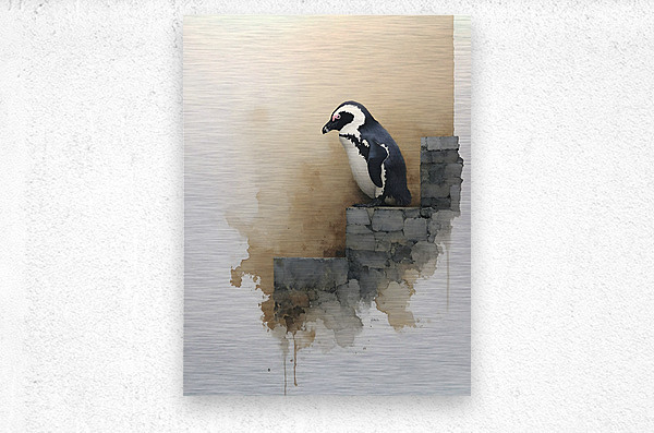 Steps of Solitude depicts a lone penguin poised on a crumbling stone wall, its quiet stance radiating grace and introspection. Soft watercolor textures and gentle tones evoke calm and reflection — a visual poem about resilience in stillness. Perfect for serene interiors, minimalist spaces, or collectors who appreciate quiet strength in simplicity. Printed with archival inks on museum-grade materials. Curated by Savage Art Prints.