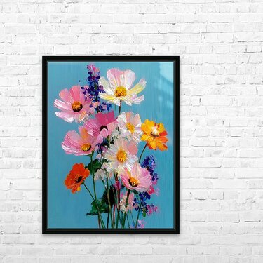 Color Study in Bloom fuses geometry and nature in perfect rhythm. Red leaves, yellow petals, and blue blossoms come alive in a minimal composition of ...[+]