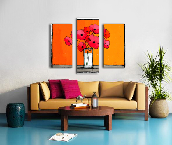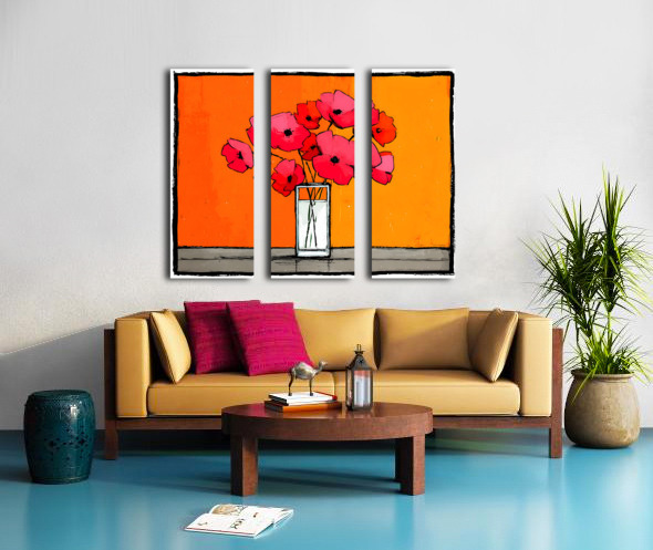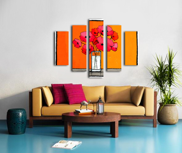 Poppies Against the Fire – Retro Minimal Floral Print Canvas print