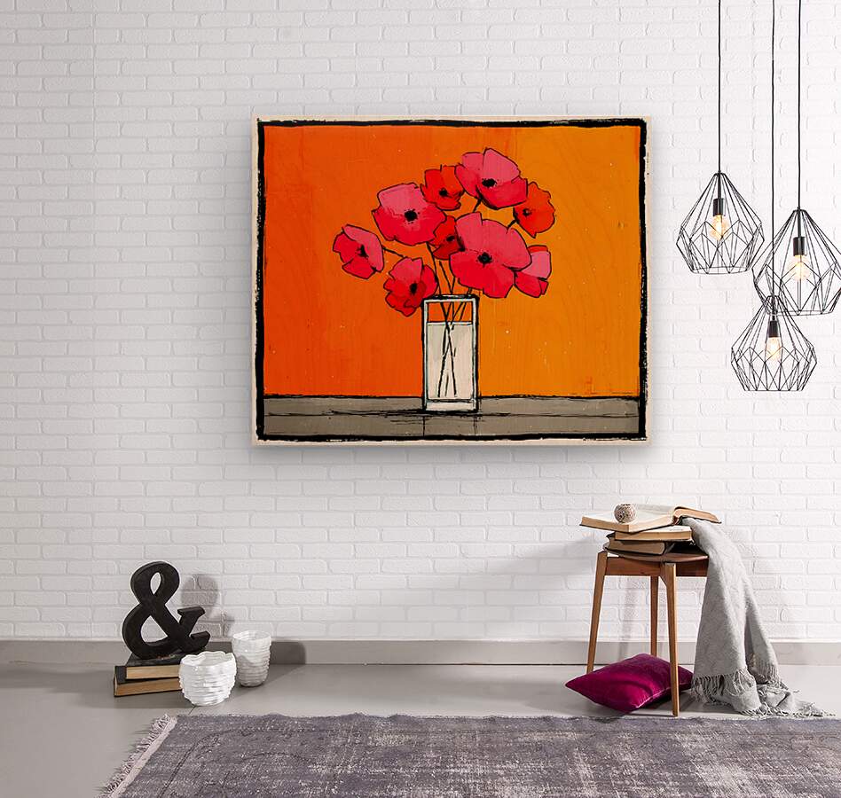 Poppies Against the Fire – Retro Minimal Floral Print  Wood print
