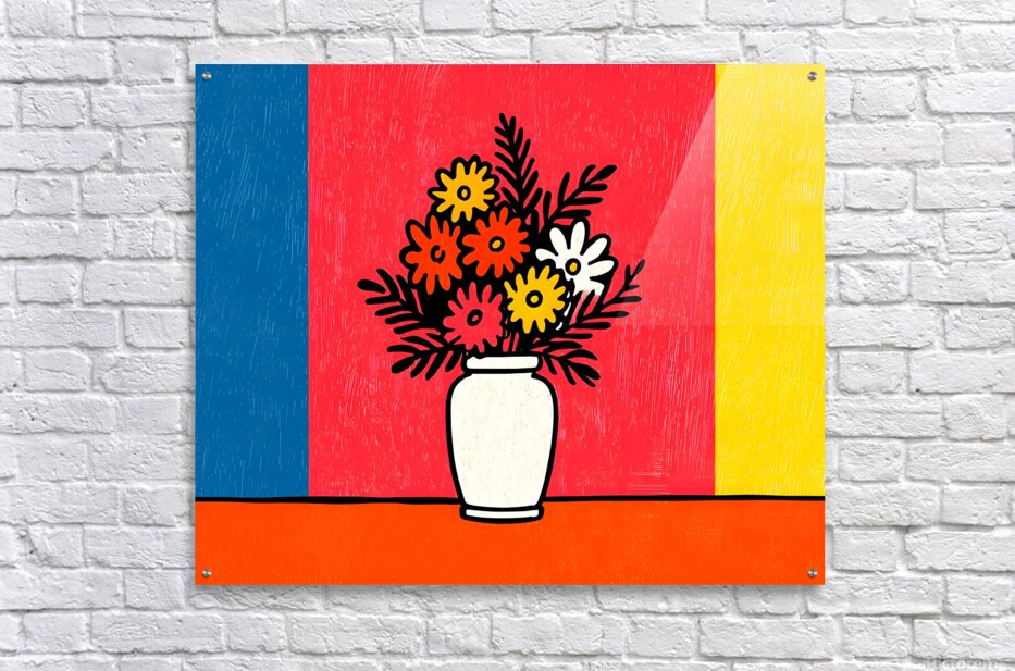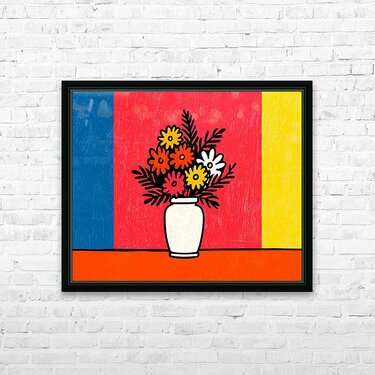 Color Field Blooms celebrates simplicity and joy through strong geometry and vivid hues. A white vase of stylized flowers stands before a split field of red, blue, and yellow — a nod to both Bauhaus color theory and pop-art playfulness. Clean outlines, flat texture, and balanced symmetry make it an uplifting piece for any room needing energy and design harmony. Perfect for contemporary living spaces, creative studios, or minimalist interiors. Printed on canvas, HD metal, acrylic, or fine-art paper using archival inks for lasting brilliance. Curated by Savage Art Prints.