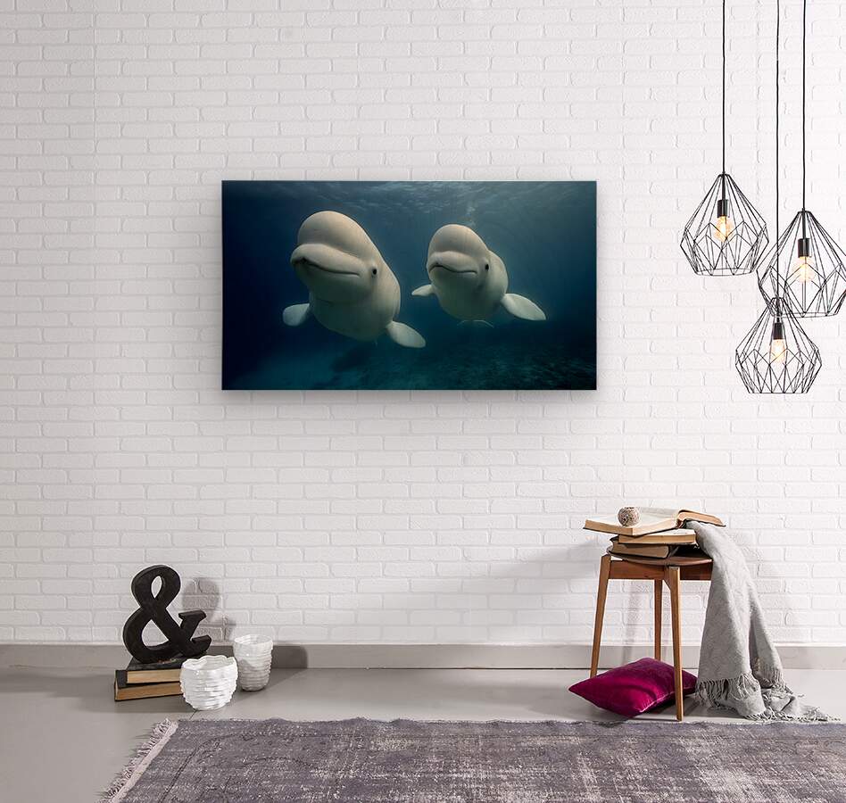 Arctic Companions – Beluga Whales Print  Wood print