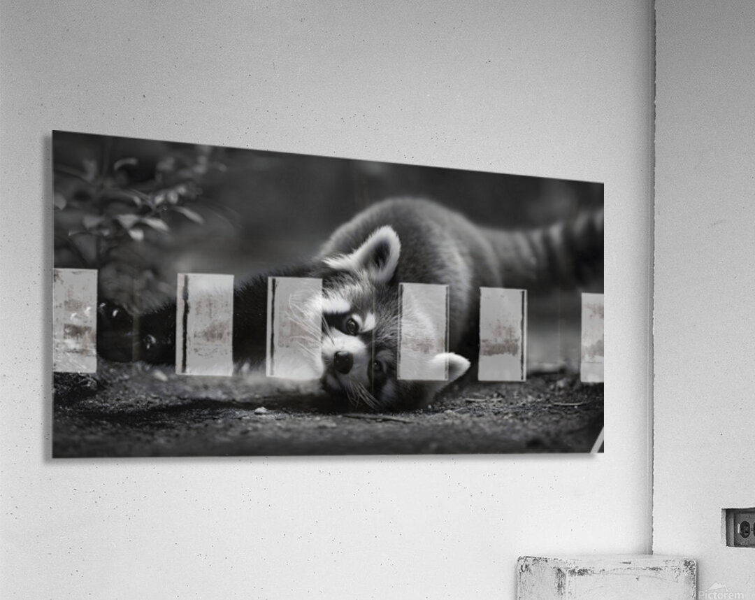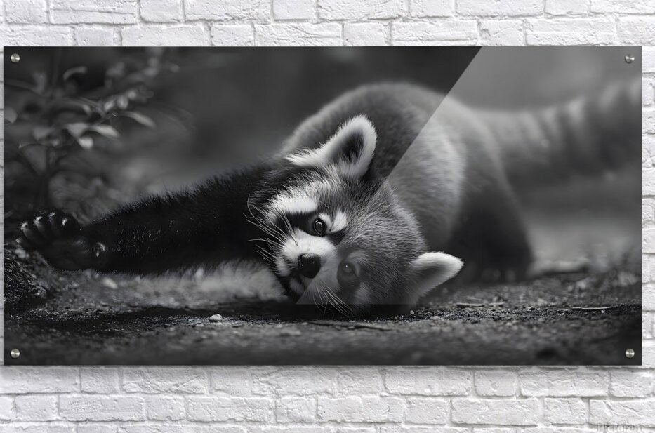 Morning Stretch – Red Panda Monochrome Print  Wood print