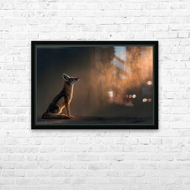 Breath of Dawn captures a desert fox basking in the first light of sunrise — its fur glowing against the golden haze. A poetic balance of warmth and solitude, this image radiates serenity and resilience. Curated by Savage Art Prints.