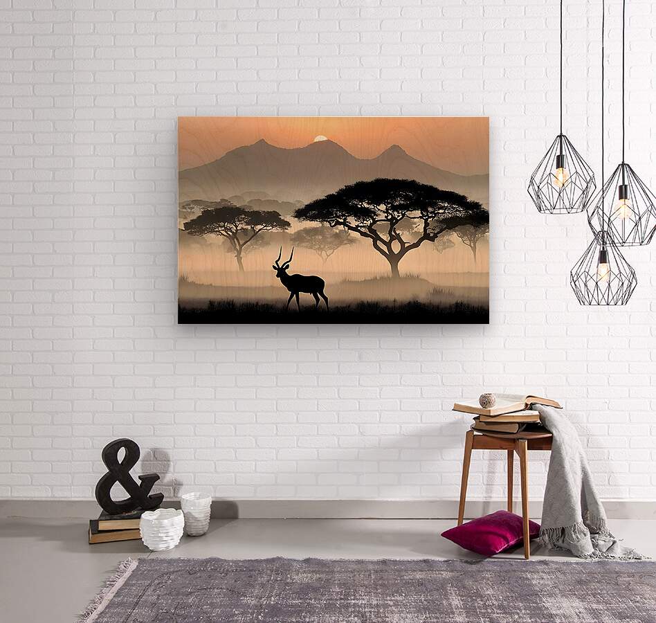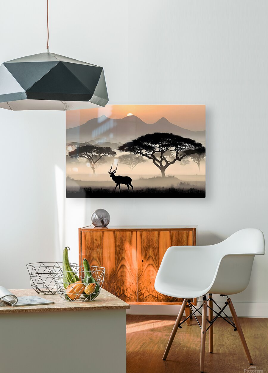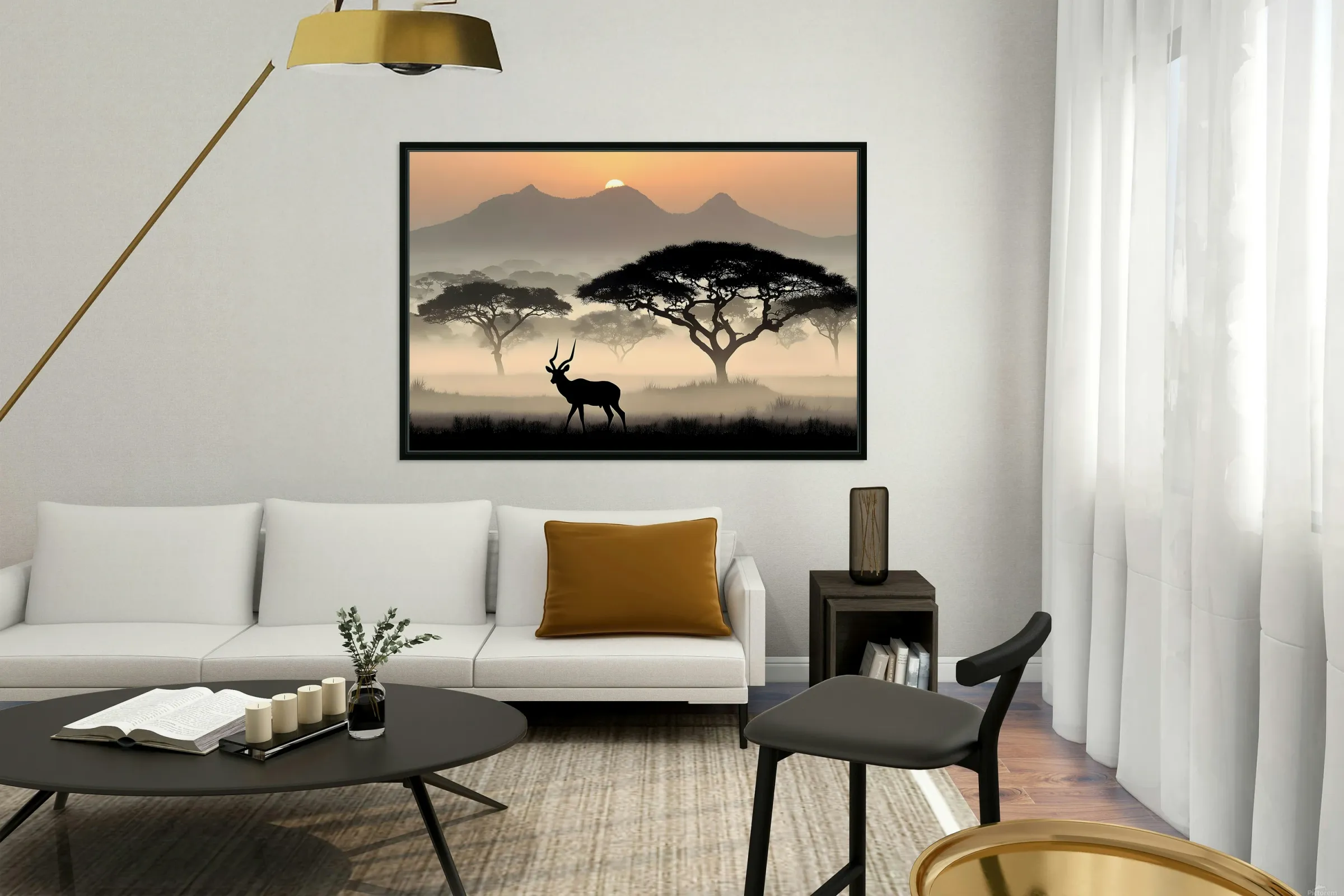 Whispering Plains presents the Saola emerging from morning mist — a rare glimpse of a near-mythic creature. Its soft silhouette against a hazy landscape evokes reverence for nature’s quiet and fragile beauty. Curated by Savage Art Prints.